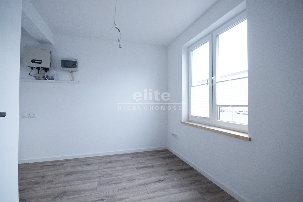 4 pokoi, dużego salonu na parterze połączonego z aneksem kuchennym z wyjściem na słoneczny taras, 3 sypialni na piętrze oraz pomieszczenia gospodarczego.