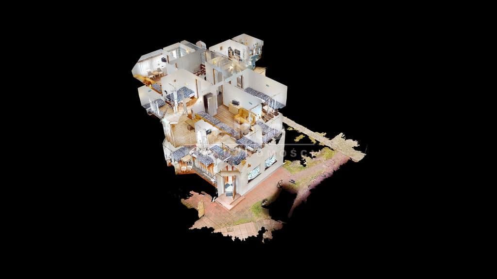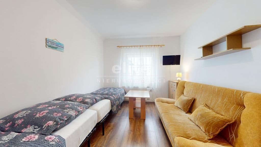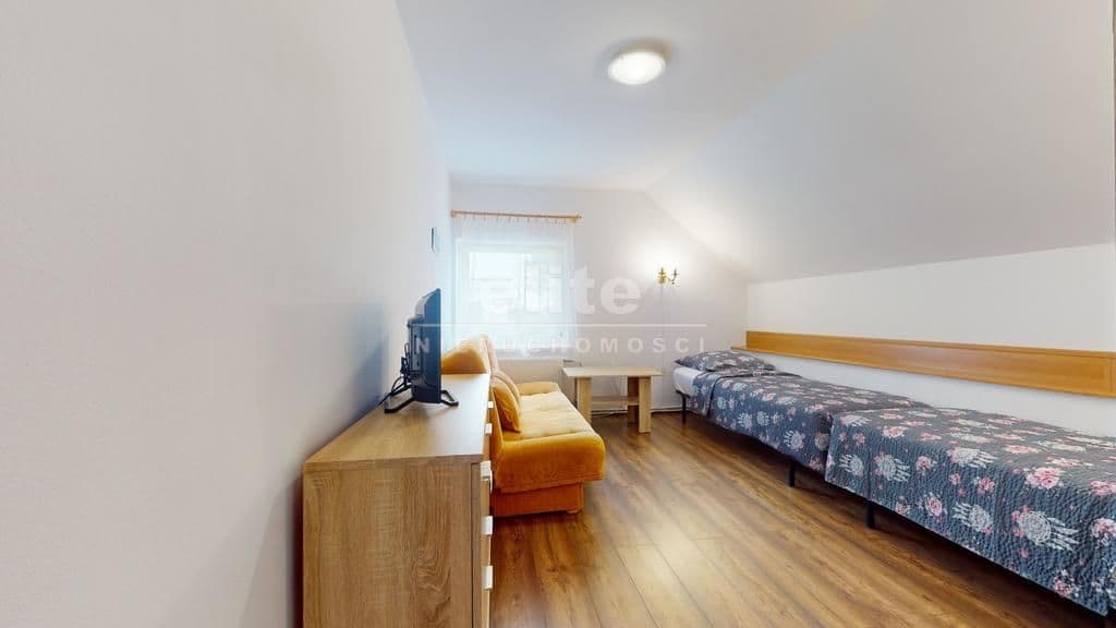 trzy pokoje gościnne z łazienkami, pomieszczenie gospodarcze z łazienką oraz kotłownia.