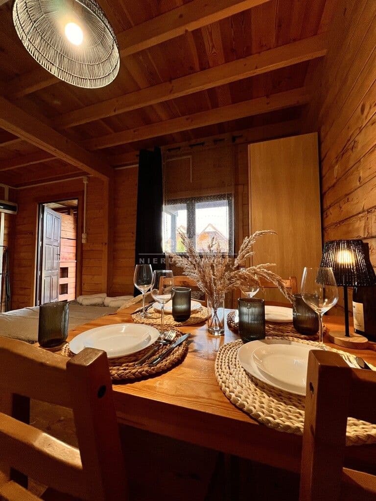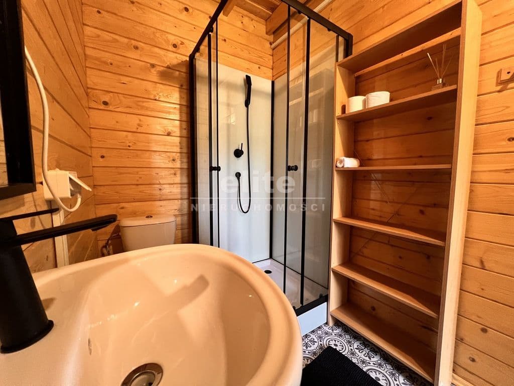 - Dodatkowy 11 domek wolnostojacy o powierzchni 45 m² z tarasem drewnianym 30m2.