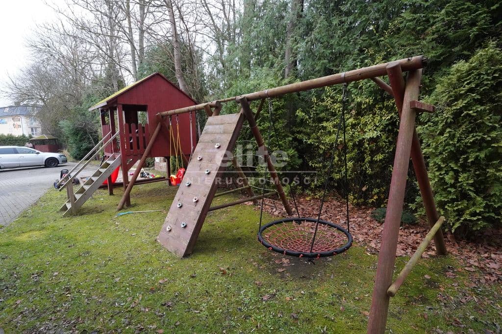 Cała posesja ładnie zagospodarowana z licznymi krzewami , altanami, placem zabaw dla dzieci oraz miejscem do grillowania.