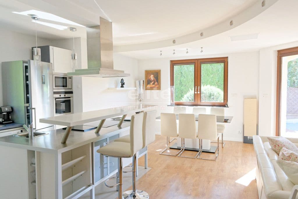 Dodatkowe udogodnienia: OGRZEWANY BASEN O ŚREDNICY 5,5 METRA, taras, garaż w bryle budynku, balkon, automatyczne rolety w oknach