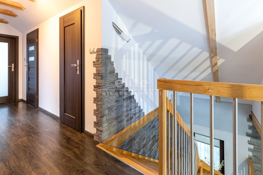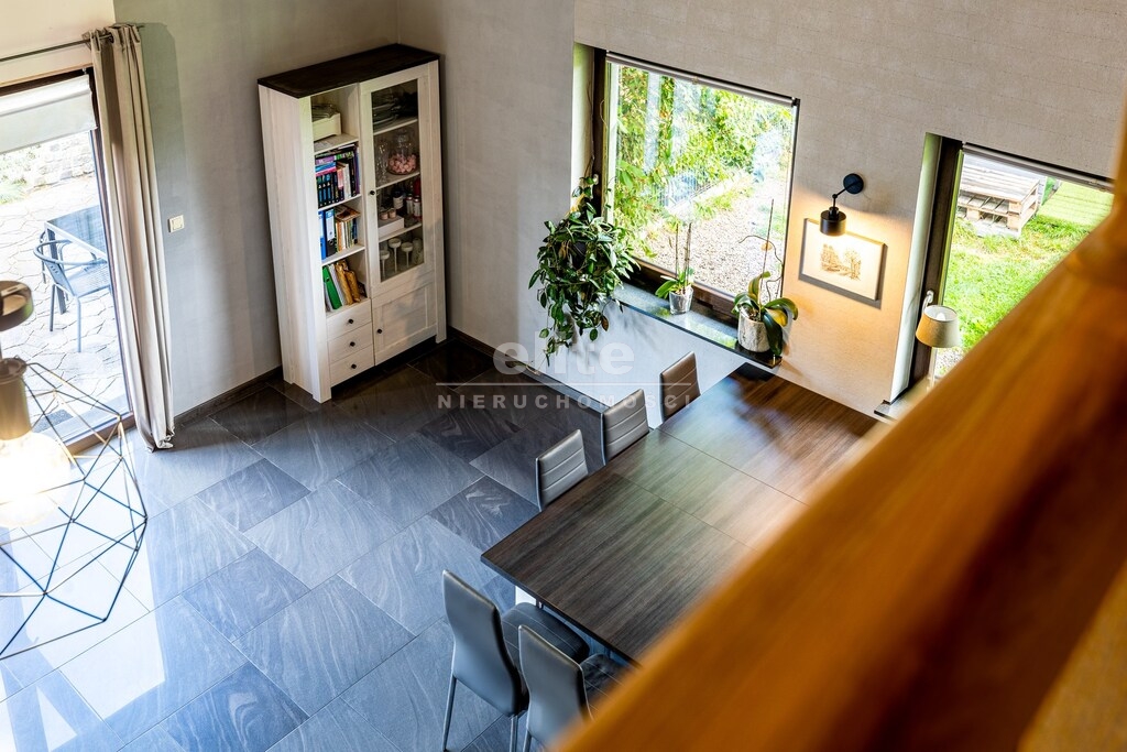 Wybudowany w 2011 roku, dom o powierzchni użytkowej 180 m2. Nieruchomość zlokalizowana na bardzo spokojnej ulicy, która bezpośrednio sąsiaduje z lasem. Dom bardzo klimatyczny i zadbany.