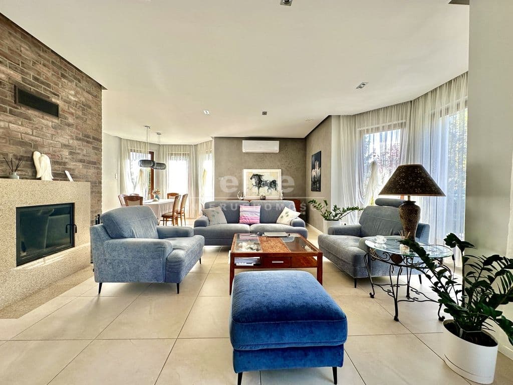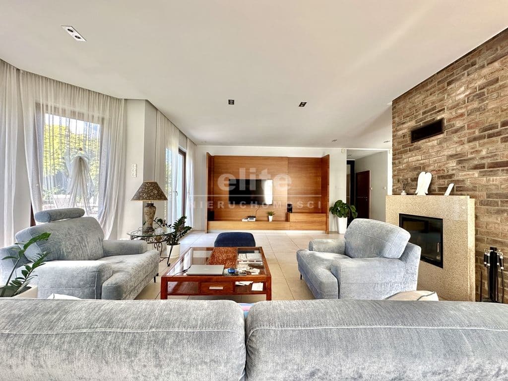 Przestronny salon z kominkiem i wyjściem na taras