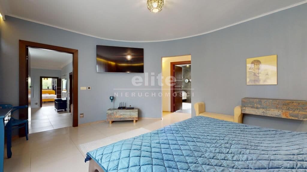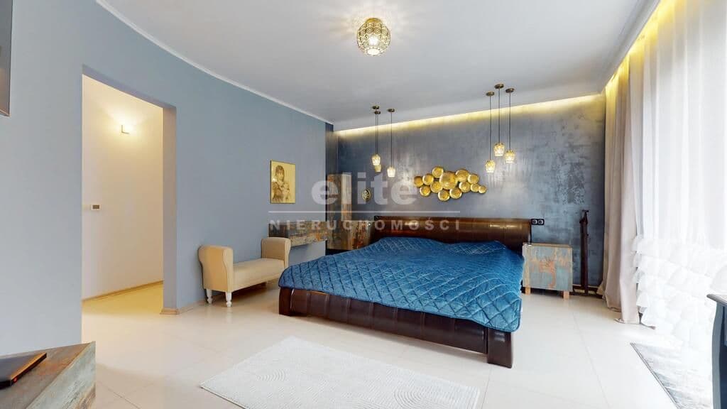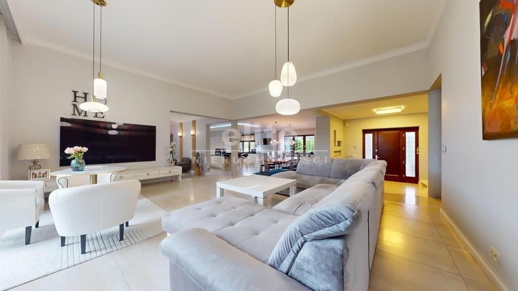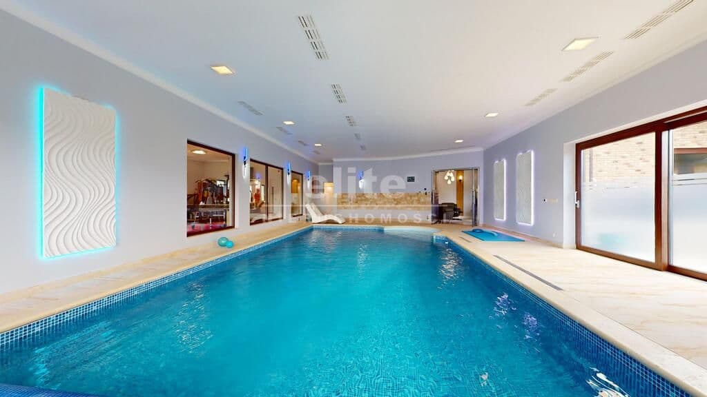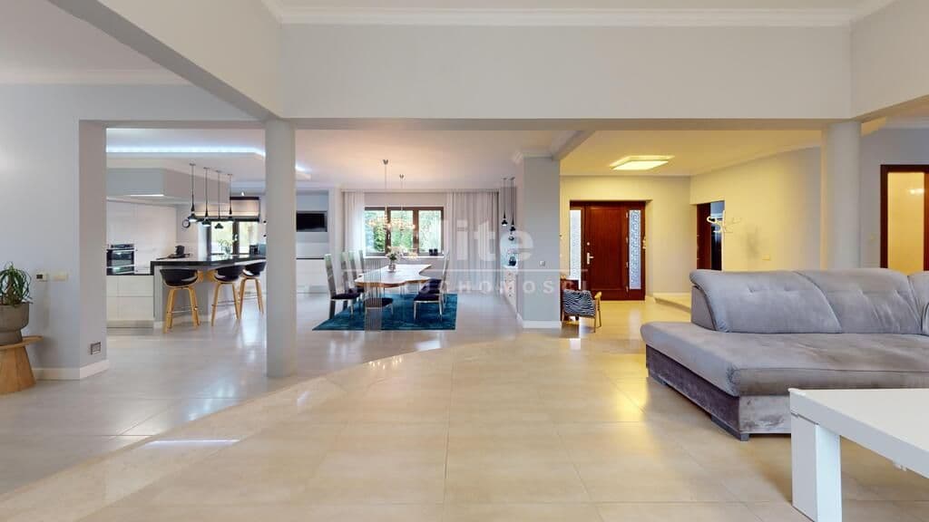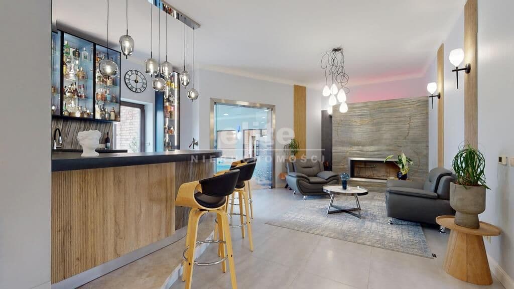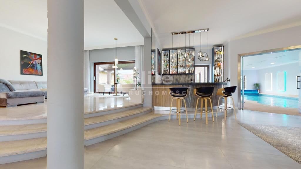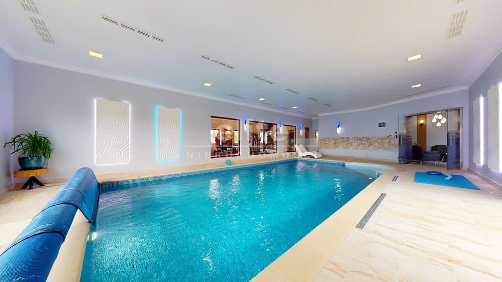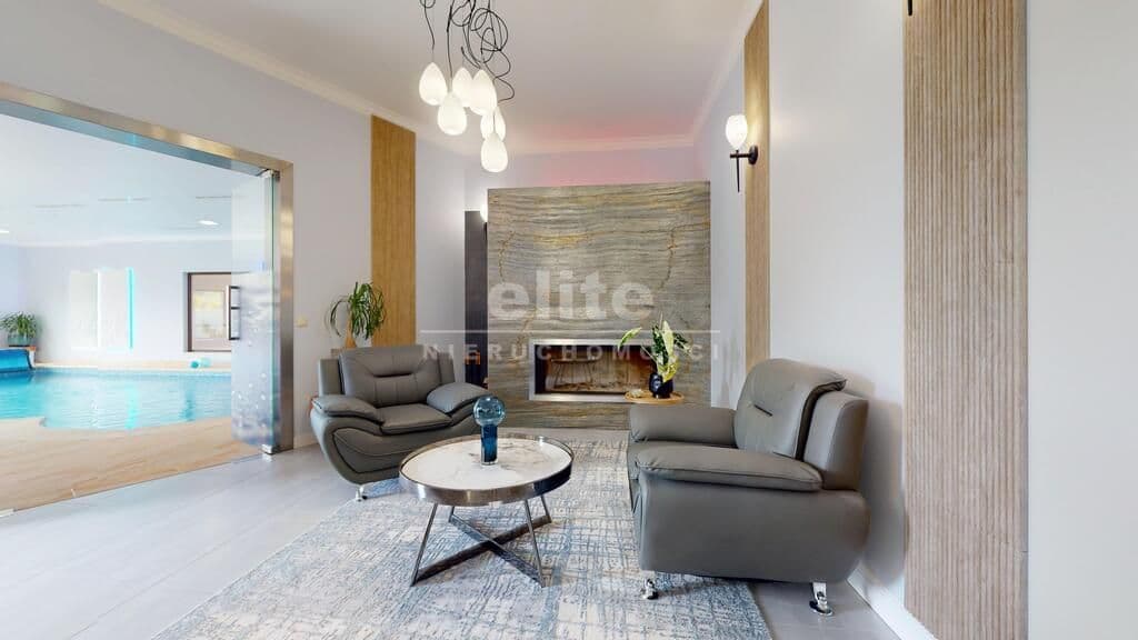 Wyjątkowa nieruchomość klasy premium - dom parterowy o powierzchni 740 m2 z krytym basenem, salą fitness oraz sauną, posadowiony na działce o powierzchni 4667 m2 z pięknie zagospodarowanym ogrodem. Zainteresowany? Zapraszam do środka! Mijając próg domu czujemy, że wchodzimy w strefę luksusu i komfortu, jaką zapewniają nam gustowne i ekskluzywne wnętrza, wykończone w wysokim standardzie.