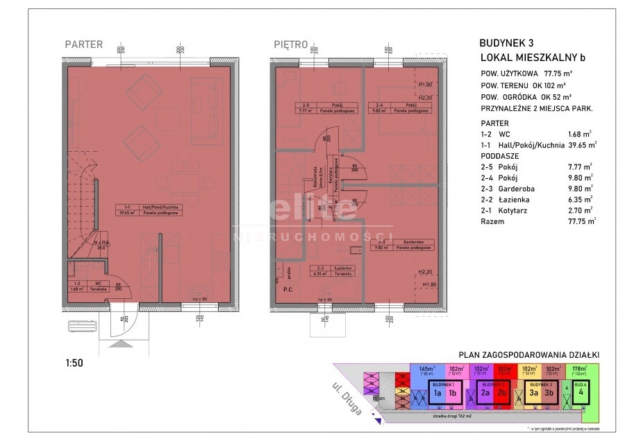 Oferta dotyczy domu nr 3b o powierzchni 77,75m2. składającego się z:
