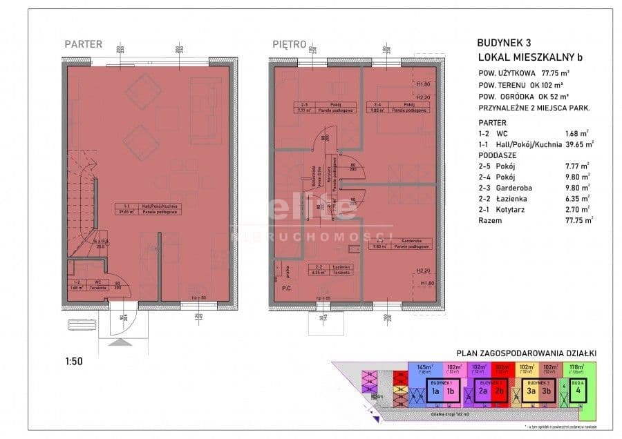 - działka: ok. 102 m², w tym ogród ok. 52 m²