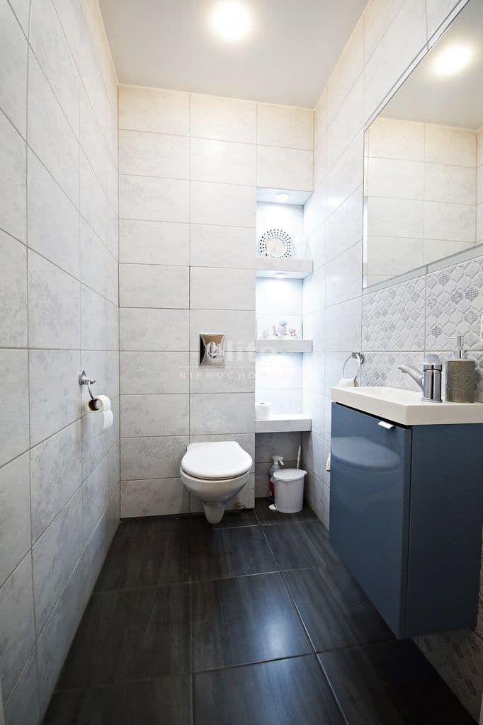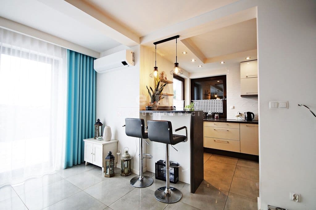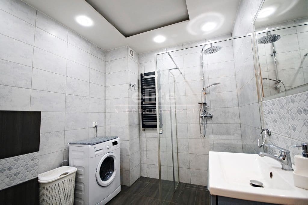 Na parterze znajduje się duży salon o powierzchni 32,88 m2, z centralnie posadowionym kominkiem. W salonie mamy otwartą kuchnie z wyspą, łazienkę z kabiną prysznicowa, umywalką, WC oraz 3 pokojowe mieszkanie z łazienką i osobną toaletą z niezależnym osobnym wejściem z boku budynku