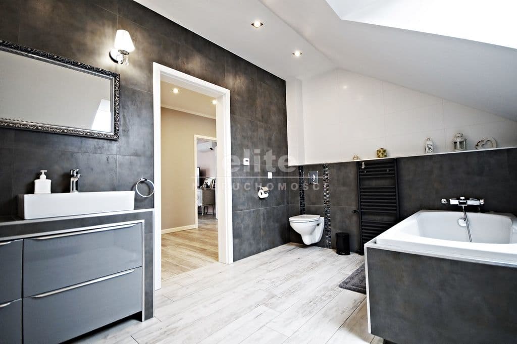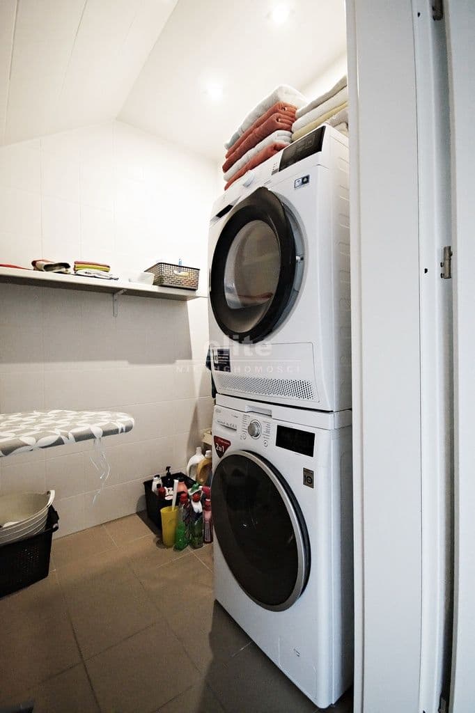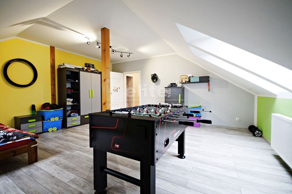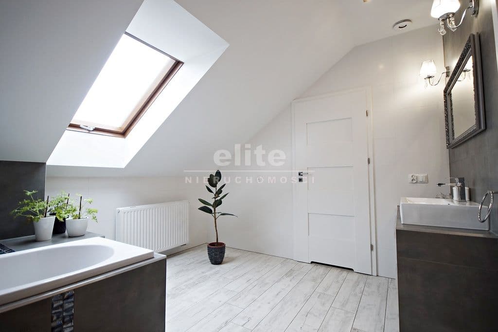 Na piętrze są 4 sypialnie, łazienka z wanną pralnią, WC.