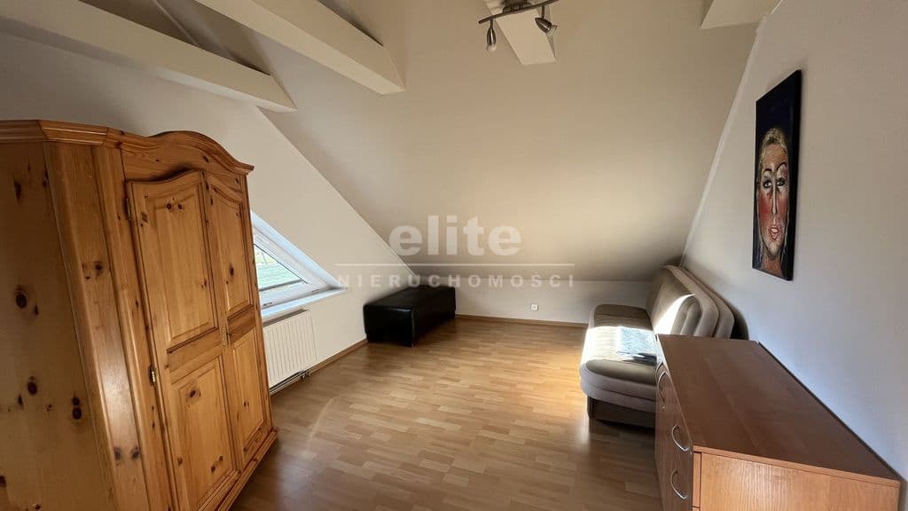 Na piętrze znajdują się dwa pokoje oraz łazienka z kabiną prysznicową.