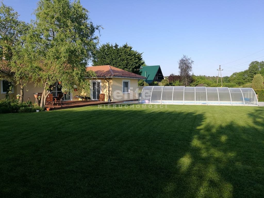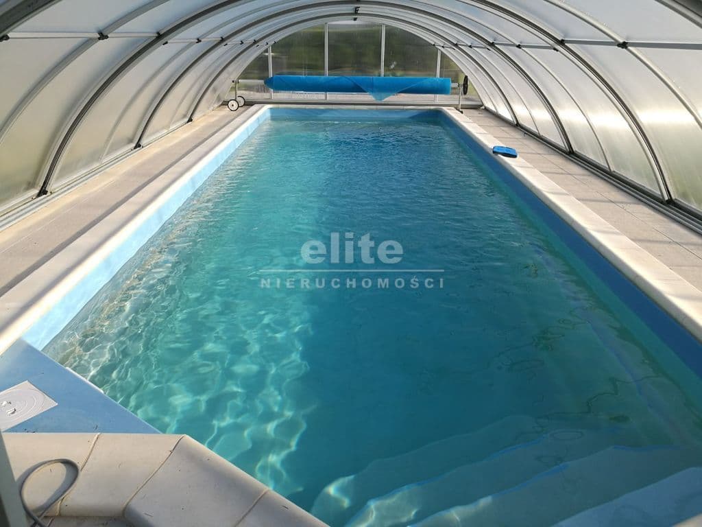 Kryty basen o wym. 3,5 m x 9,5 m x 1,5 m, wyposażony w automatyczne podajniki chemii wraz z kontrolą jakości wody, z pompą ciepła, dzięki której można korzystać z kąpieli przez cały rok. Słoneczny drewniany taras przy basenie, z ujmującym widokiem na Jezioro Nowowarpieńskie sprzyja wypoczynkowi w otoczeniu natury. Działka o powierzchni 1960 m2 jest w pełni ogrodzona. Usytuowana w kierunku południowym, dzięki czemu nieruchomość jest doskonale wyeksponowana na światło dzienne.