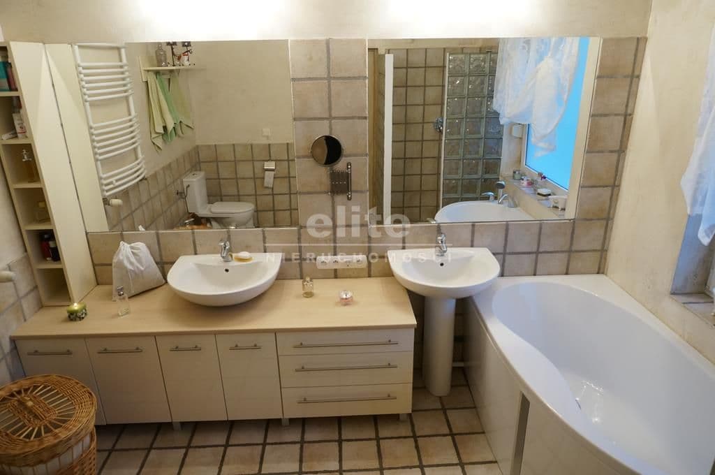 2) Sypialnia z bezpośrednim wyjściem na taras i przylegającą przestronną łazienką z wanną, prysznicem, dwiema umywalkami, bidetem i wc.