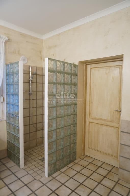 Wykończenie – podłoga i częściowo ściany wyłożone płytkami kamiennymi, na reszcie ścian położony tynk strukturalny,
