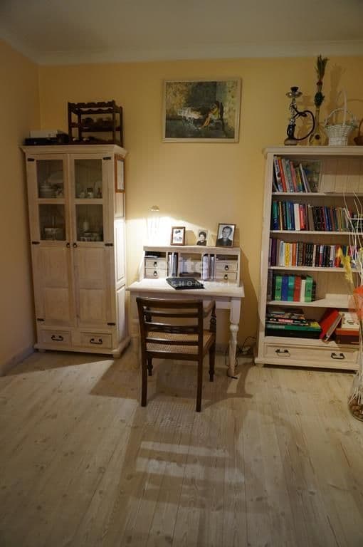 Wykończenie – w sypialni położona jest deska bielona, a ściany są gładzone malowane, w łazience na podłodze oraz części ścian płytki kamienne, resztę ścian pokrywa tynk strukturalny.