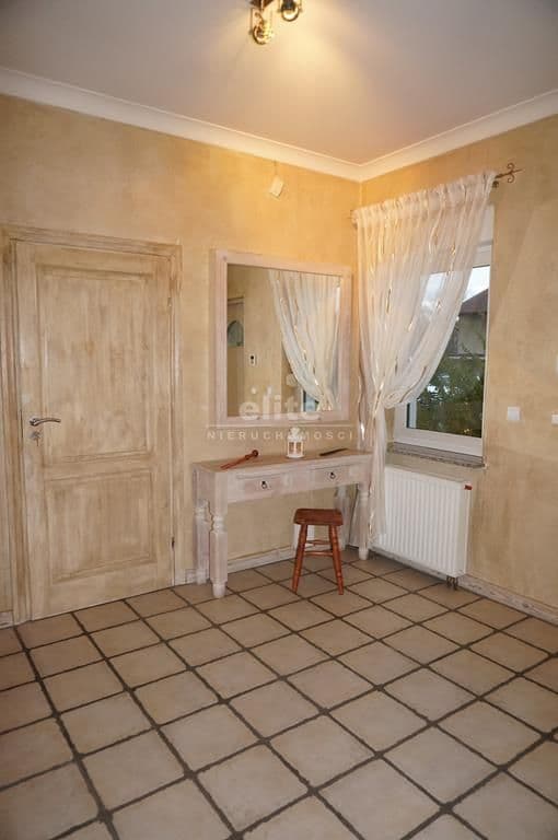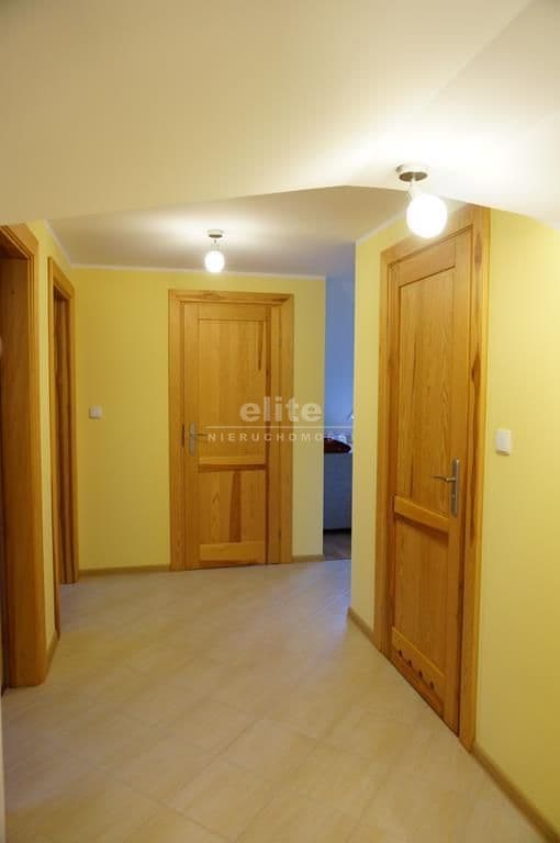 Wykończenie – na podłodze położona deska bielona, ściany gładzone, malowane, stała zabudowa składająca się dwóch dużych szafami typu komandor oraz funkcjonalną szafką na buty z wysuwanymi półkami, znajdującą się pod bukowymi drewnianymi schodami, prowadzącymi do drugiej części domu,
