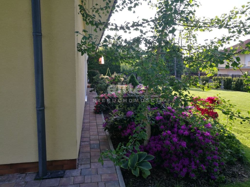 Willę otacza w pełni zagospodarowany ogród wyposażony w system zraszania zasilany wodą ze studni, z licznymi nasadzeniami oraz przestrzenią rekreacyjną.