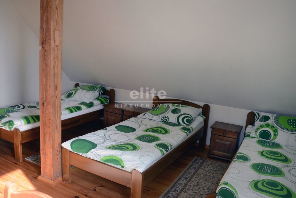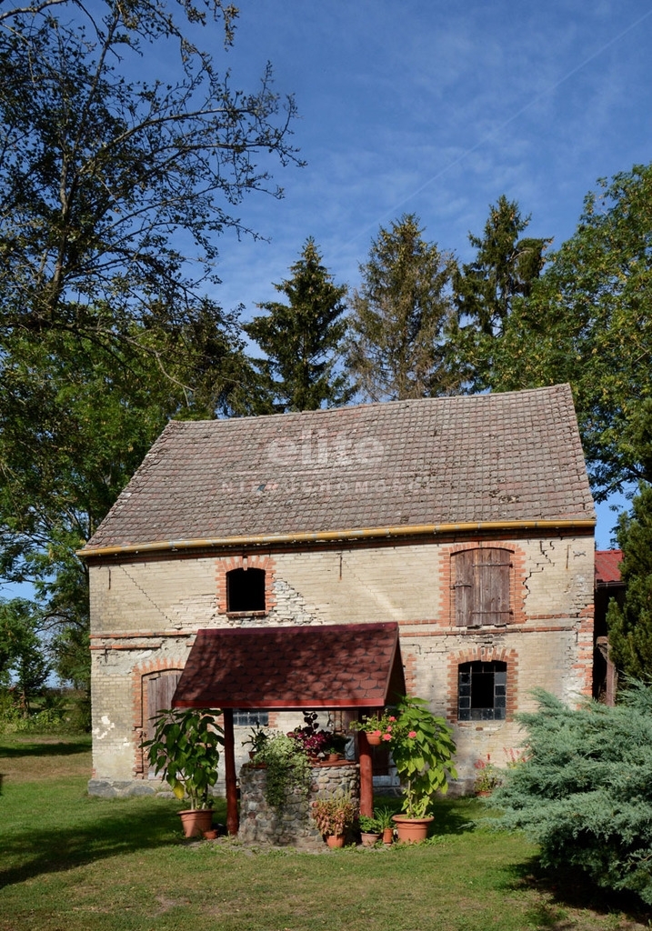 Działka o powierzchni 12 ha, na której znajdują się cztery budynki. Jednym z nich jest bardzo duży, murowany budynek gospodarczy, parterowy z poddaszem użytkowym o pow. 271 m2, idealnie nadający się na stajnię. Drugi to budynek murowany, dawniej stodoła, w którym znajduję się kuchnia letnia z WC,