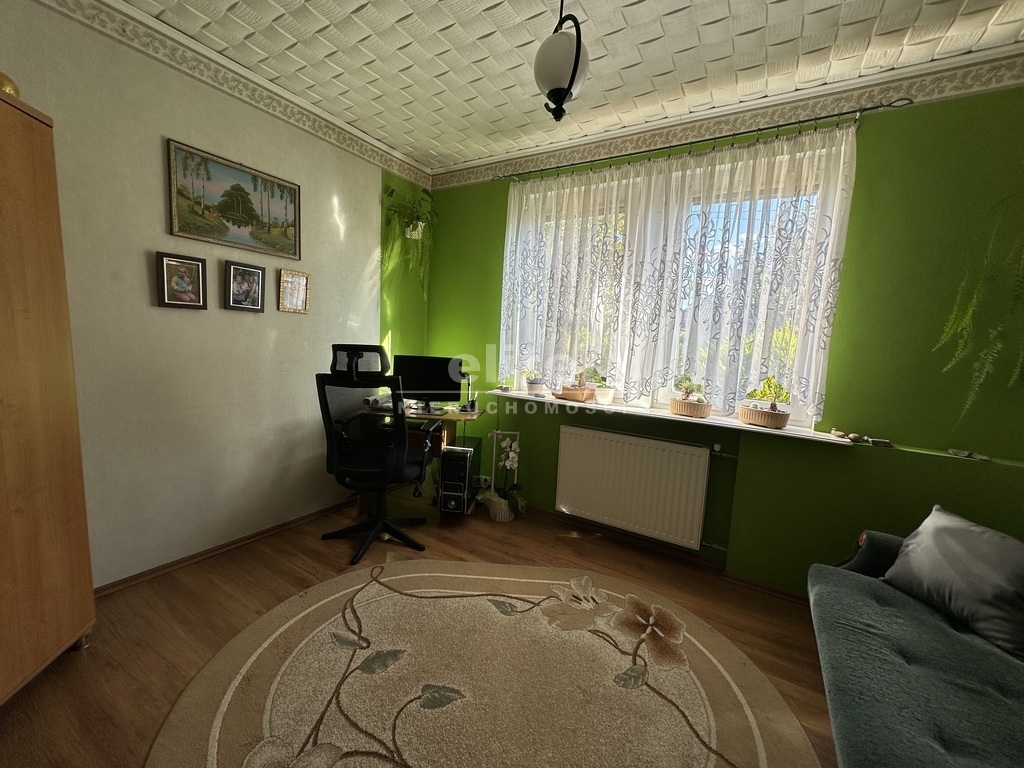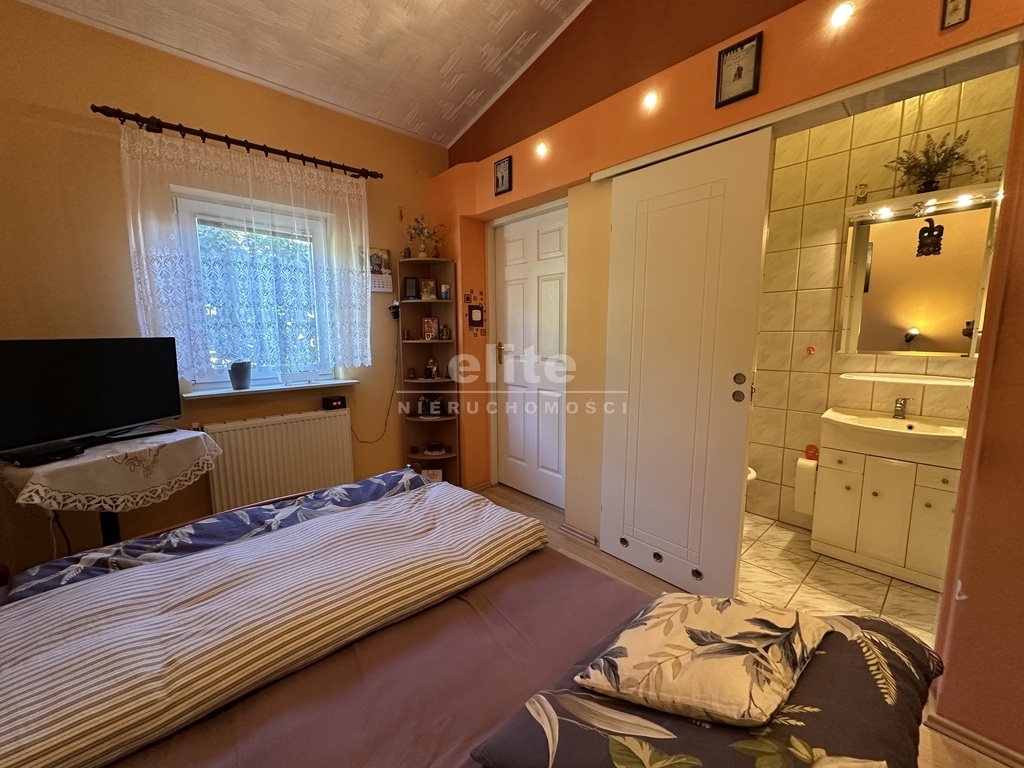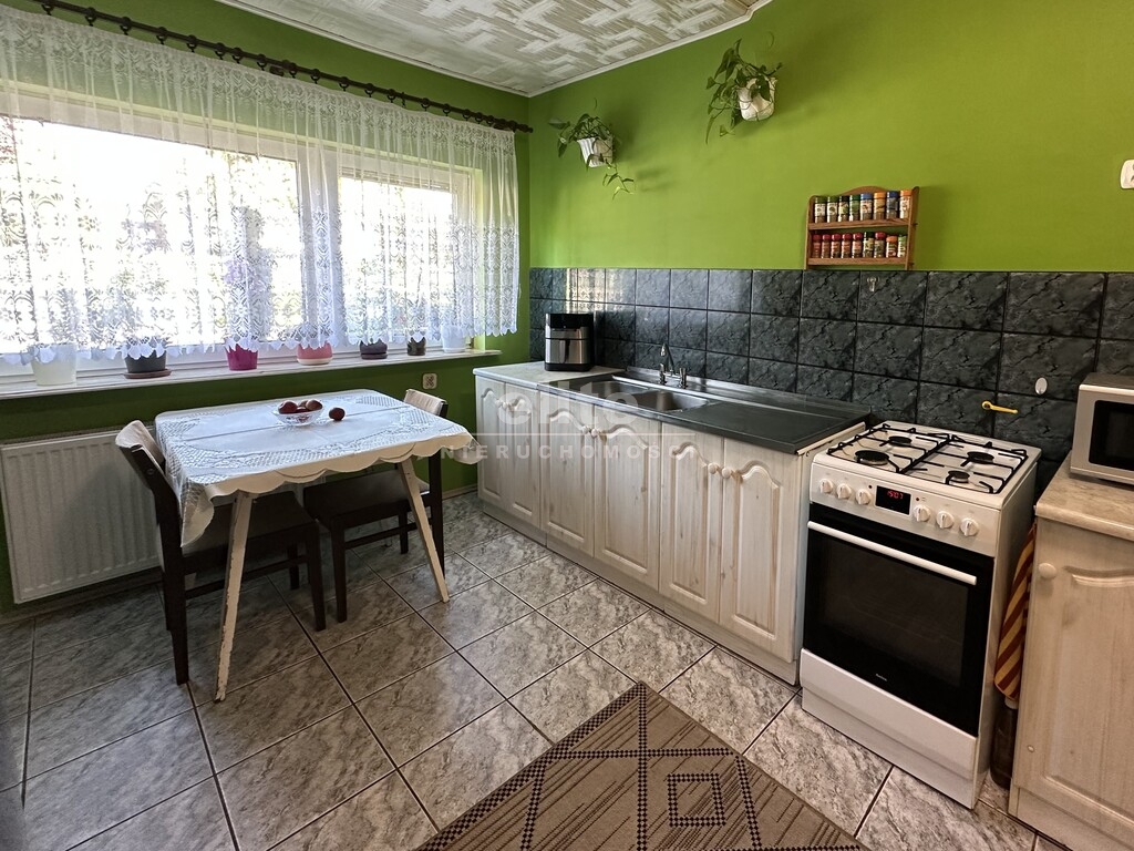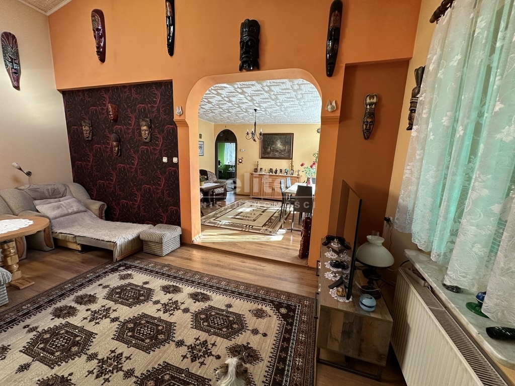 W skład nieruchomości wchodzi-oddzielna kuchnia pod którą znajduje się spora piwniczka, pięć pokoi, dwie łazienki ,komunikacja , pomieszczenia pomocnicze oraz garaż z kanałem. Budynek w użytkowaniu, czysty stan techniczny z potencjałem modernizacyjnym.
