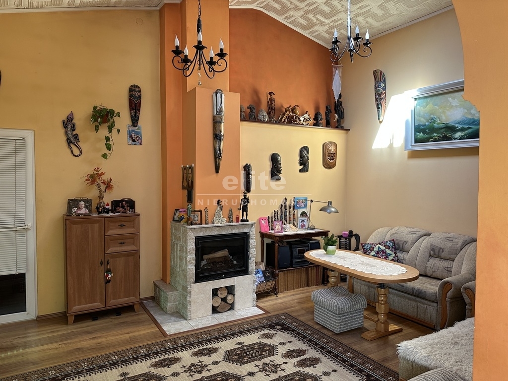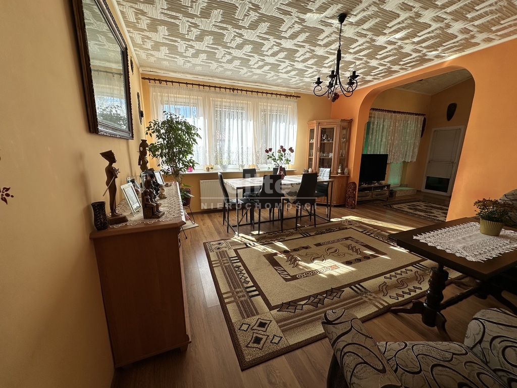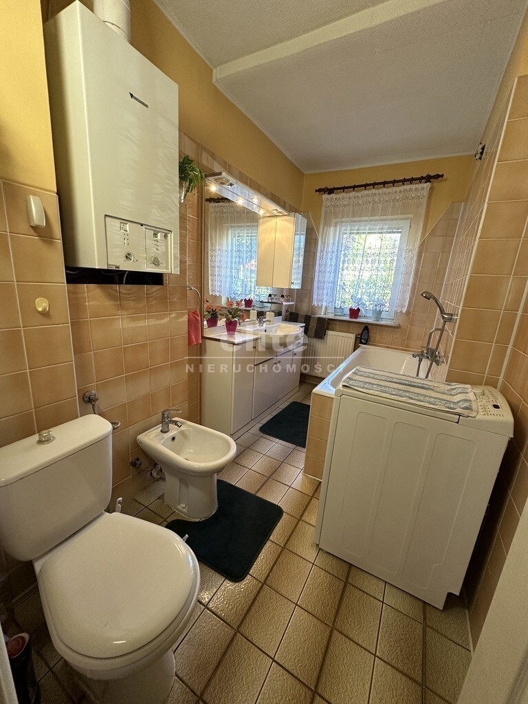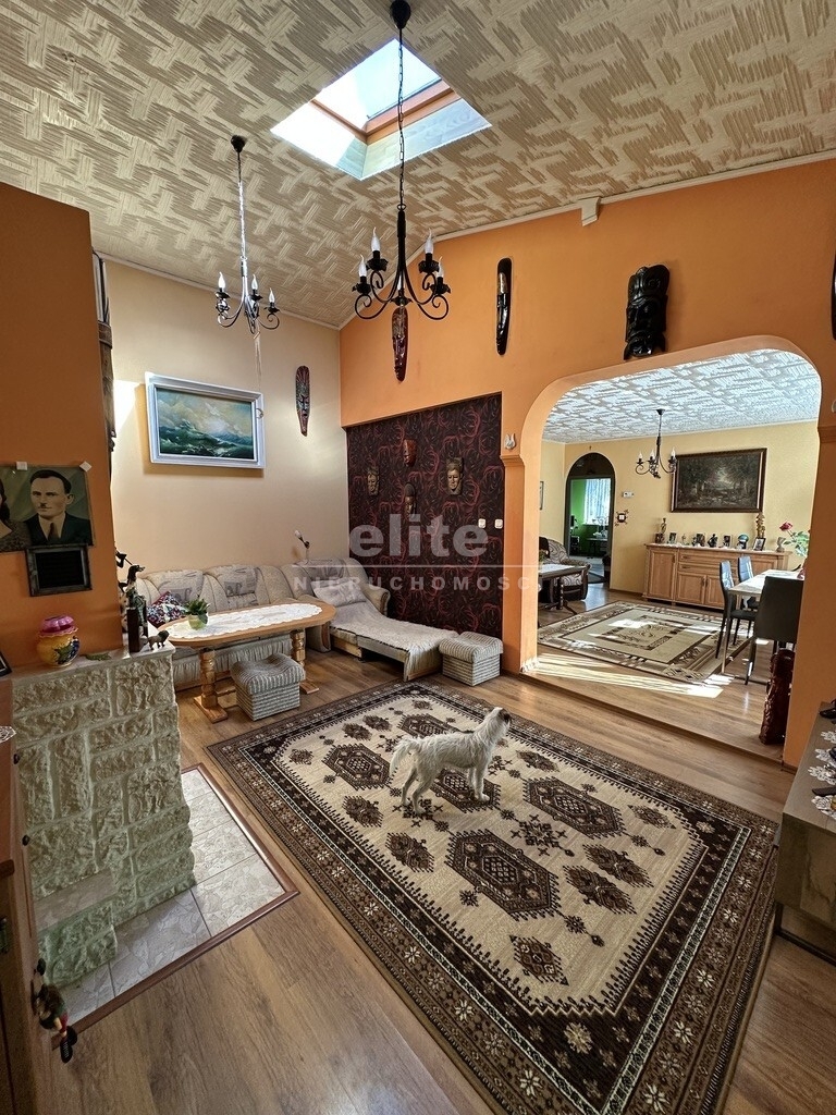 W skład nieruchomości wchodzi-oddzielna kuchnia pod którą znajduje się spora piwniczka, pięć pokoi, dwie łazienki ,komunikacja , pomieszczenia pomocnicze oraz garaż z kanałem. Budynek w użytkowaniu, czysty stan techniczny z potencjałem modernizacyjnym.