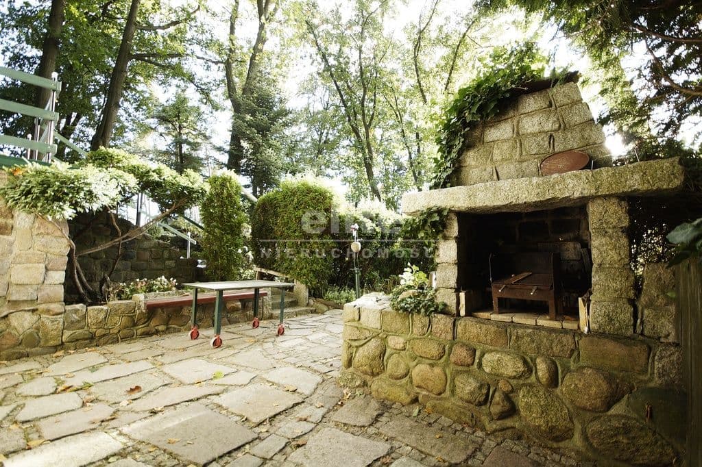 Ogrzewanie z pieca na drewno umiejscowiony w garażu, ciepła woda z przepływomierza, która znajduje się w łazience.