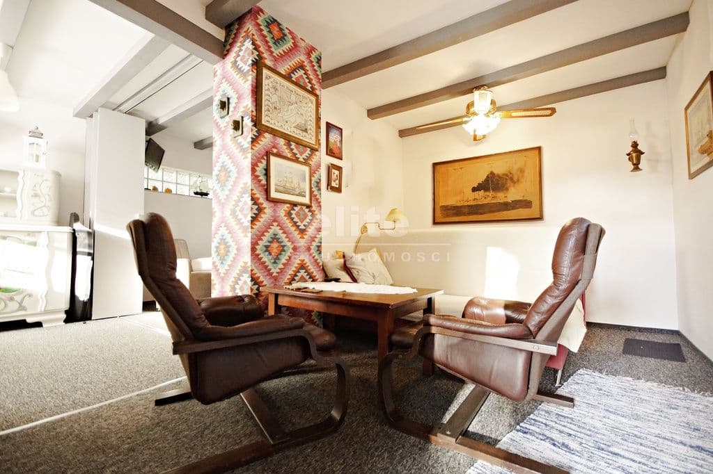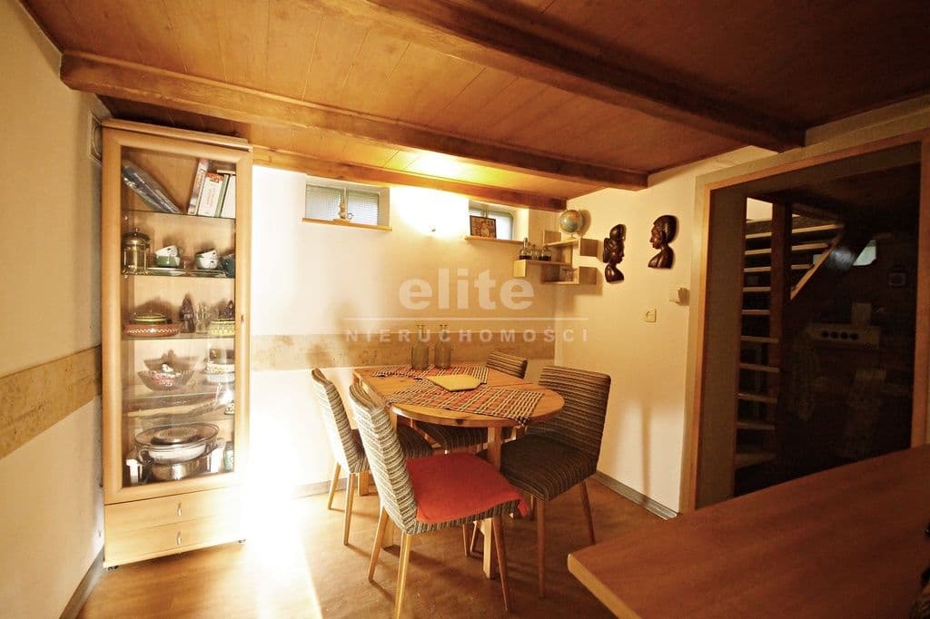 - Pokój dzienny 36 m2 z pokoju zejście drewnianymi schodami na parter.