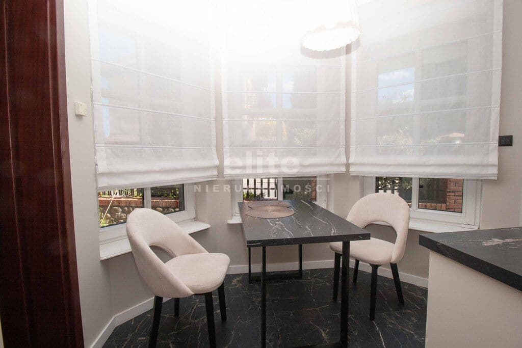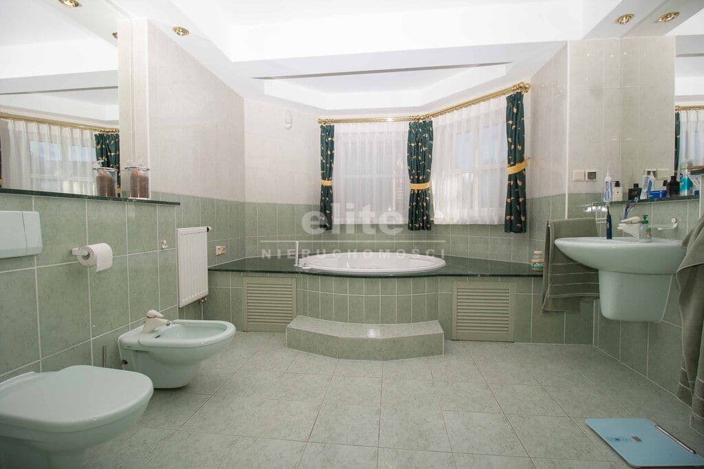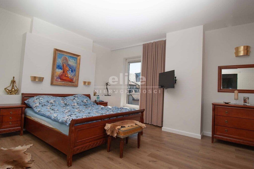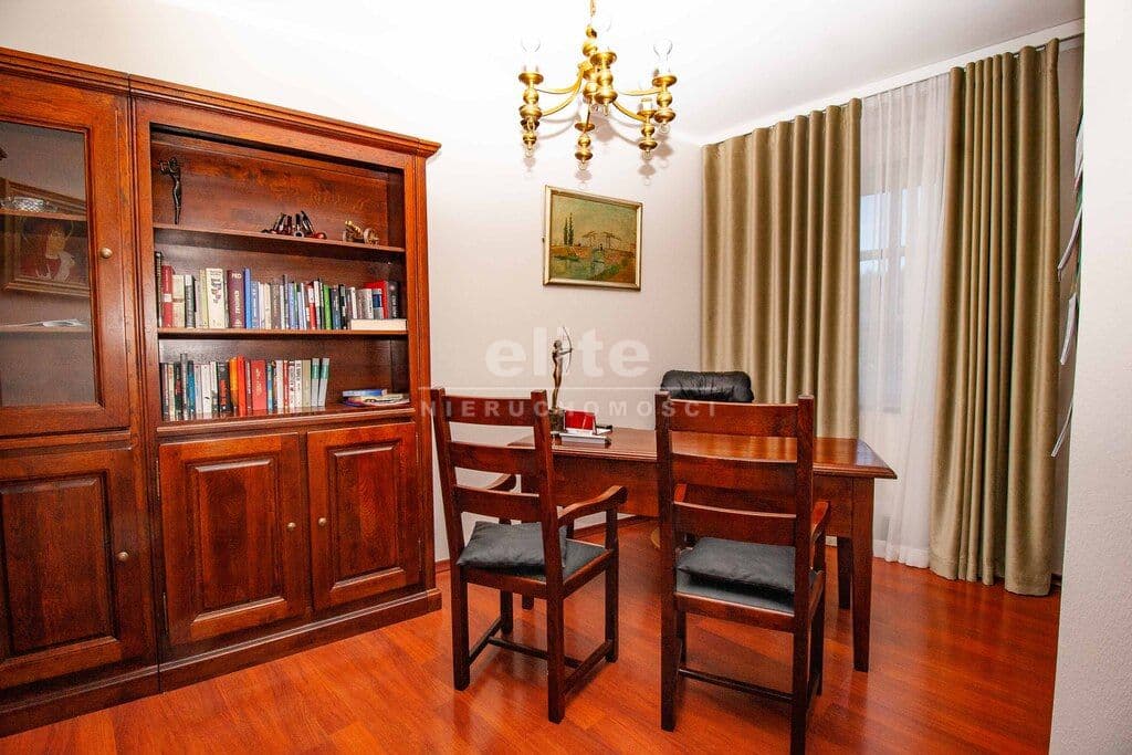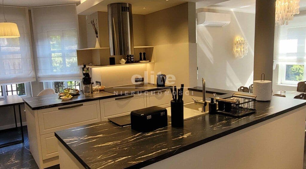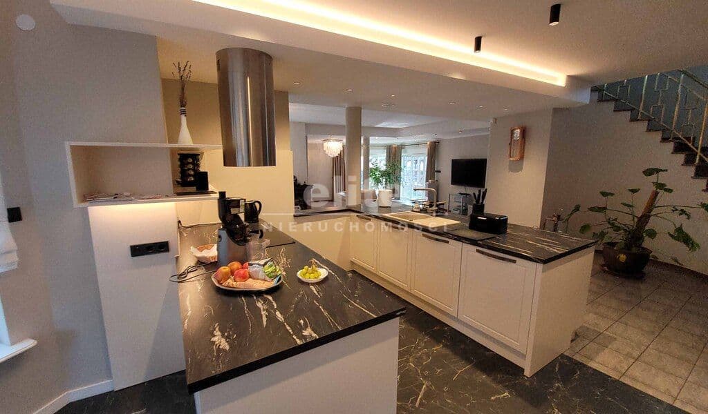 Dom został zaprojektowany i wykończony z pomocą architekta przy użyciu najwyższej jakości materiałów. Wnętrza urządzono ze smakiem i dużą dbałością o detale – oświetlenie, armatura łazienkowa oraz elementy dekoracyjne zostały sprowadzone z Hiszpanii, Włoch i Niemiec. Zasłony wykonane są z jedwabiu, a całe widoczne na zdjęciach wyposażenie może pozostać w cenie nieruchomości.