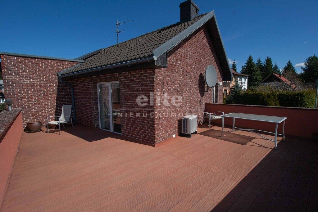 •Trzy sypialnie z garderobami (27,77 m², 15,04 m², 11,97 m²), z czego największa z wyjściem na imponujący taras (42 m²) z widokiem na panoramę Osowa i las,