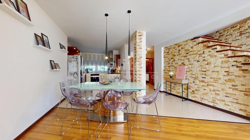 Oferta dotyczy środkowego segmentu szeregowca o bardzo dobrych proporcjach i funkcjonalnym układzie. Powierzchnia użytkowa 170 m² a powierzchnia całkowita 246 m² , wybudowany na działce o powierzchni 210 m². Budynek z 2000 roku postawiony w technologii tradycyjnej, cegła, warstwa izolacji styropian 10 cm i cegła klinkierowa, dach pokryty dachówką ceramiczną.