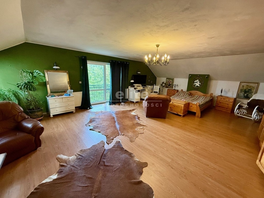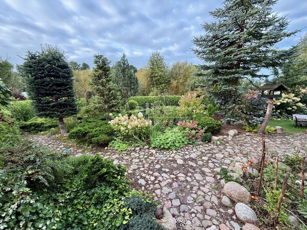 Ogród: Działka o powierzchni 1946 m² jest pięknie zagospodarowana – znajdziesz tu mnóstwo roślin ozdobnych, drzewa, krzewy oraz duży staw z pomostem, który nadaje posesji niepowtarzalnego klimatu. Idealne miejsce na relaks lub poranną kawę przy śpiewie ptaków.