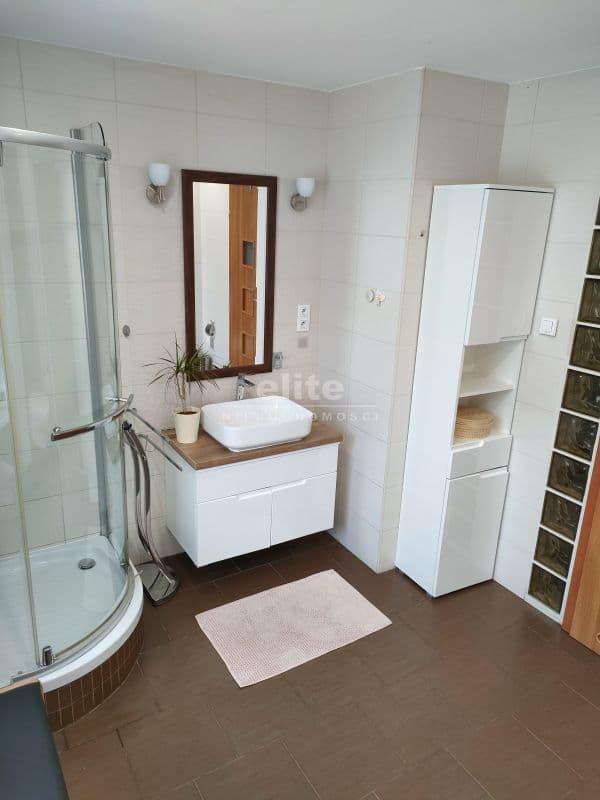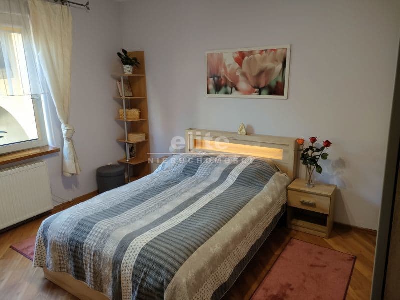 Góra domu składa się z trzech pokoi. Salonu 21m2, sypialnia 16m2 łazienka 4,20m2 i kuchnia 6,5,.korytarz 4,20m2,pokoik młodzieżowy 8,30m2,garderoba 2m2.Calość gustownie urządzona w stylu nowoczesnym w jasnych przyjemnych kolorach.
