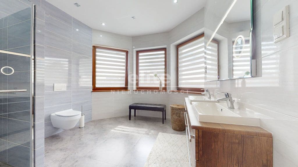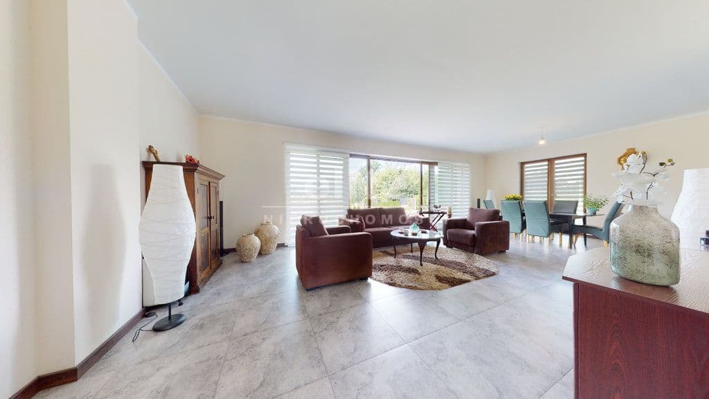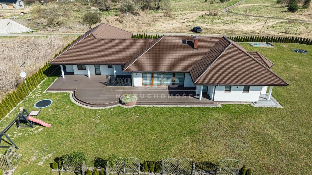 Nieruchomość mogąca służyć za przykład funkcjonalności i perfekcyjnego wykończenia. Pomieszczenia zaaranżowane z ogromną pieczołowitością i dbałością o każdy szczegół przy wykorzystaniu najwyższej jakości materiałów. Zastosowanie wielu udogodnień technologicznych ma na celu komfortowe i ekonomiczne korzystanie z budynku: głębinowa pompa ciepła zasilająca ogrzewanie podłogowe (sterownik do ogrzewania w każdym z pokoi) i podgrzewanie wody, woda ze studni ze stacją uzdatniania wody, przydomowa oczyszczalnia ścieków.