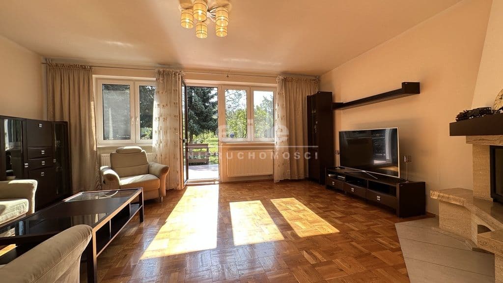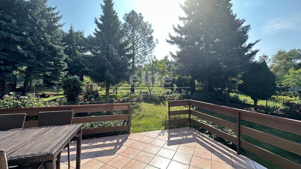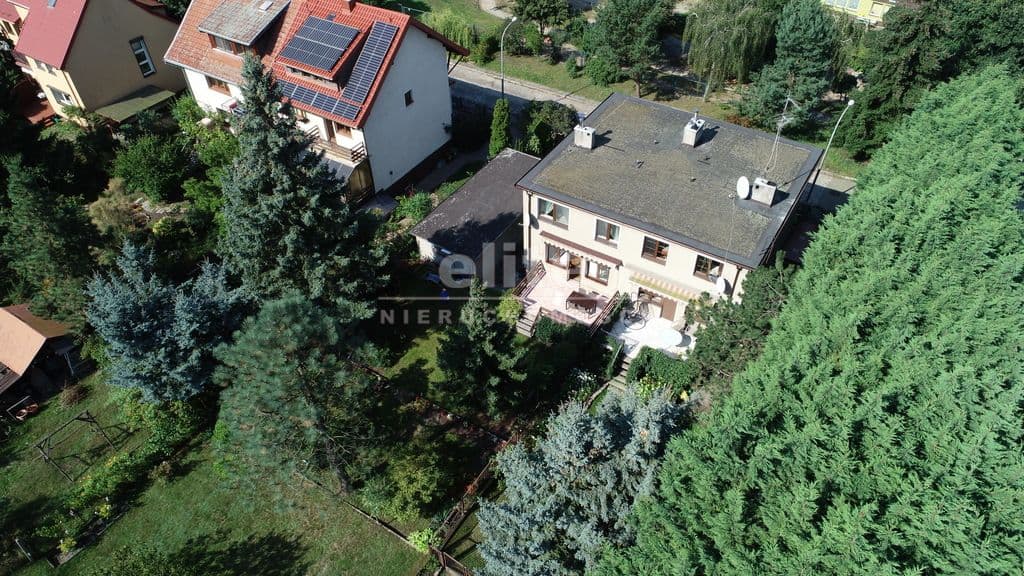 Dobrze utrzymany, słoneczny i zadbany dom w zabudowie bliźniaczej położony na pięknie obsadzonej wysoką zielenią działce (442 mkw. oraz dodatkowe ok. 160 mkw. dzierżawy z możliwością wykupu).