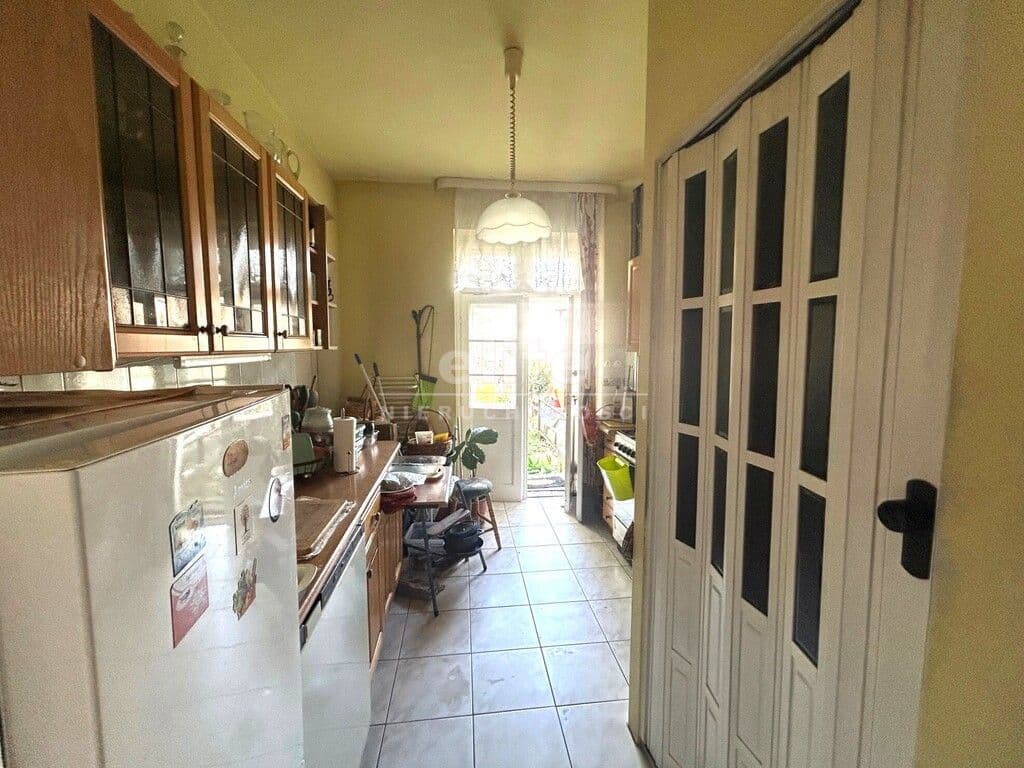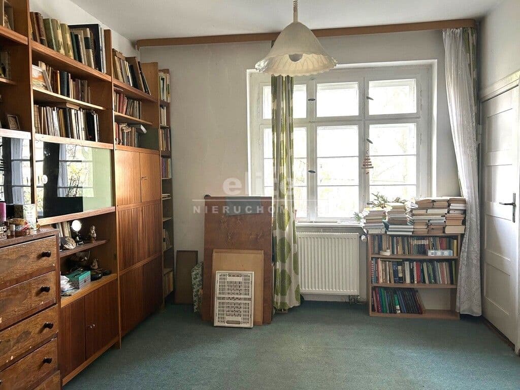 - pokój ok. 13 m2 (od strony ogrodu), połączony drzwiami z pokojem od ulicy ale też i z kuchnią. Na podłodze przedwojenne deski, ściany malowane, okna przedwojenne skrzynkowe