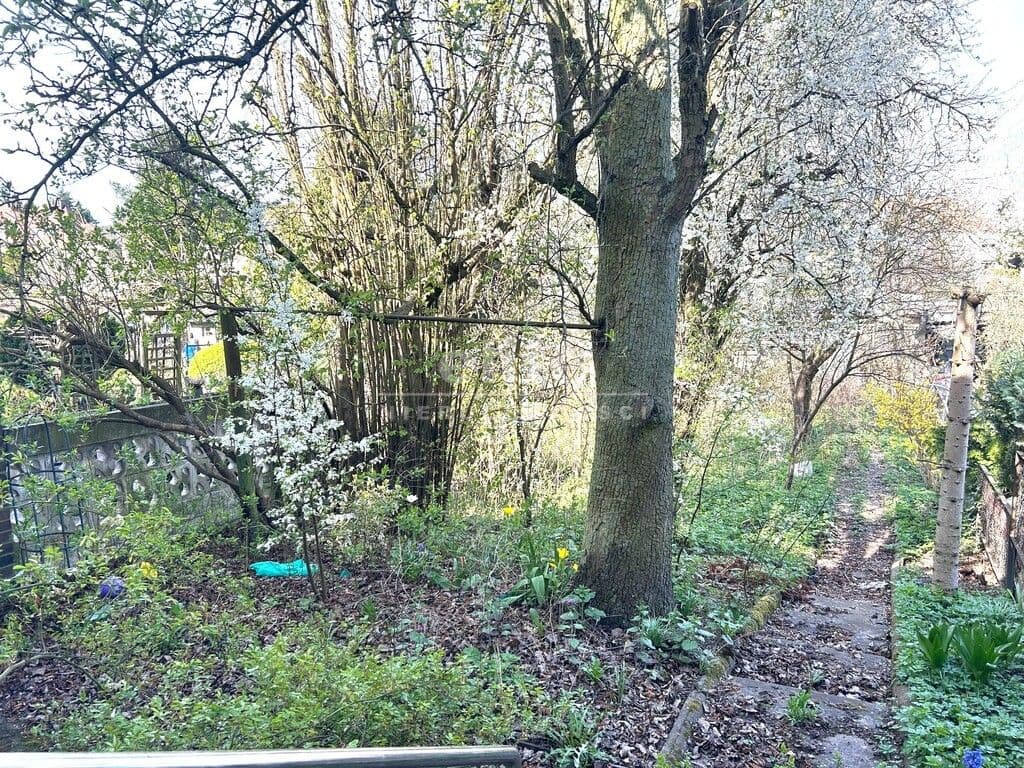 W ogródku znajdują się drzewa owocowe (grusza, śliwka, papierówka, jabłoń).
