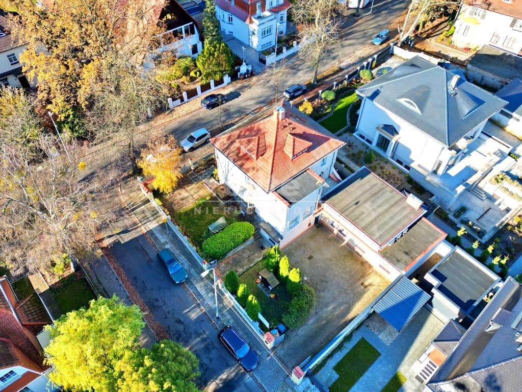 Na sprzedaż stylowy, secesyjny dom z lat 20. XX wieku o powierzchni użytkowej ok. 160 m², położony przy klimatycznej, brukowanej ulicy Waryńskiego na Starym Pogodnie. Nieruchomość znajduje się w jednej z najbardziej prestiżowych części Szczecina, otoczona piękną, przedwojenną zabudową i zielenią starodrzewu. Okolica jest spokojna, elegancka i ceniona za wyjątkowy charakter. Dom położony jest na działce o powierzchni 625 m² i został kompleksowo wyremontowany: wymieniono dach, okna, instalacje, odrestaurowano oryginalne podłogi, drzwi oraz sztukaterie. Całość zachowała niepowtarzalny klimat przedwojennej architektury.