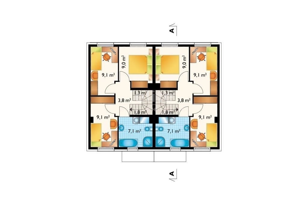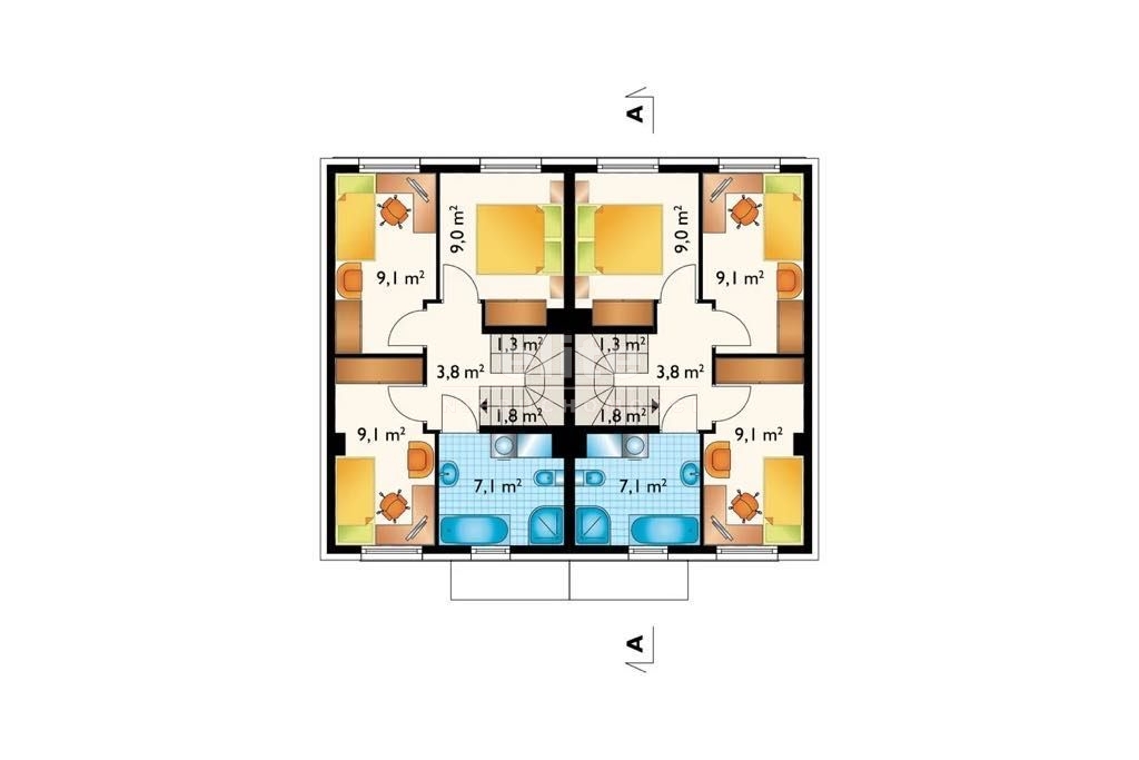 Piętro - trzy pokoje, łazienka z WC oraz korytarz. Na poddaszu dodatkowa przestrzeń o powierzchni 38,8m2.