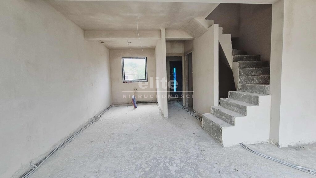 Środkowy lokal mieszkalny - zabudowa bliźniacza. Nieruchomość o bardzo funkcjonalnym rozkładzie pomieszczeń. Powierzchnia użytkowa 85,26m2 + 38,8m2 -strych użytkowy. Stan deweloperski, budynek jednorodzinny w zabudowie bliźniaczej dwulokalowej . Parter, piętro,poddasze plus ogródek oraz dwa miejsca postojowe. Na parterze salon z wyjściem na taras oraz ogródek, kuchnia, WC , schowek ,wiatrołap. Z salonu wyjście na mały ogródek poprzez taras.
