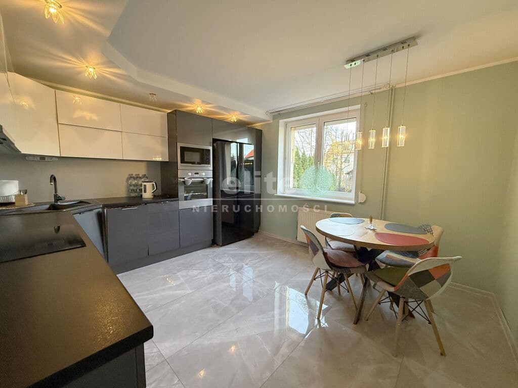 Kuchnia przestronna, z nowoczesną zabudową oraz sprzętem AGD, które pozostają w cenie (bez lodówki).