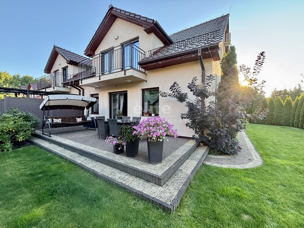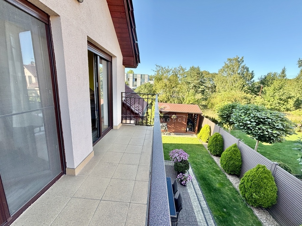 Dom usytuowany jest na działce o powierzchni 354 m², z pięknie zagospodarowanym ogrodem wyposażonym w automatyczny system nawadniania