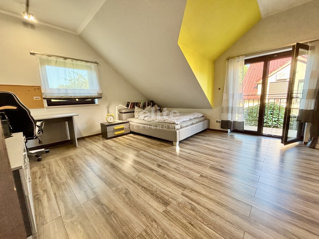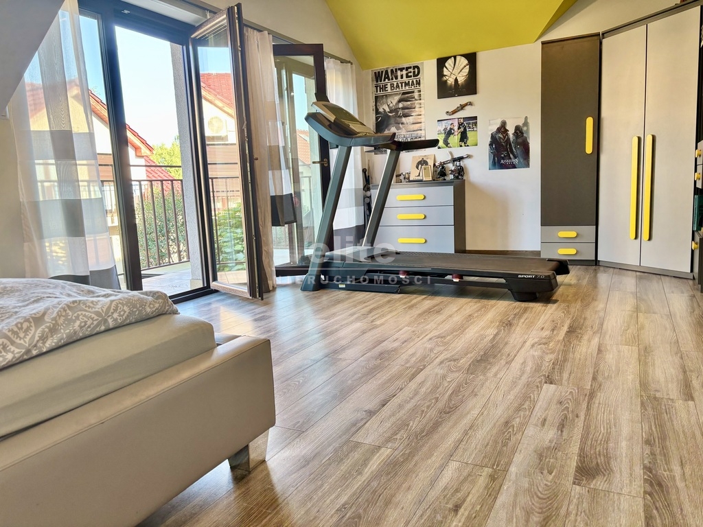 Piętro: • Trzy sypialnie, w tym dwie wyposażone w klimatyzację,