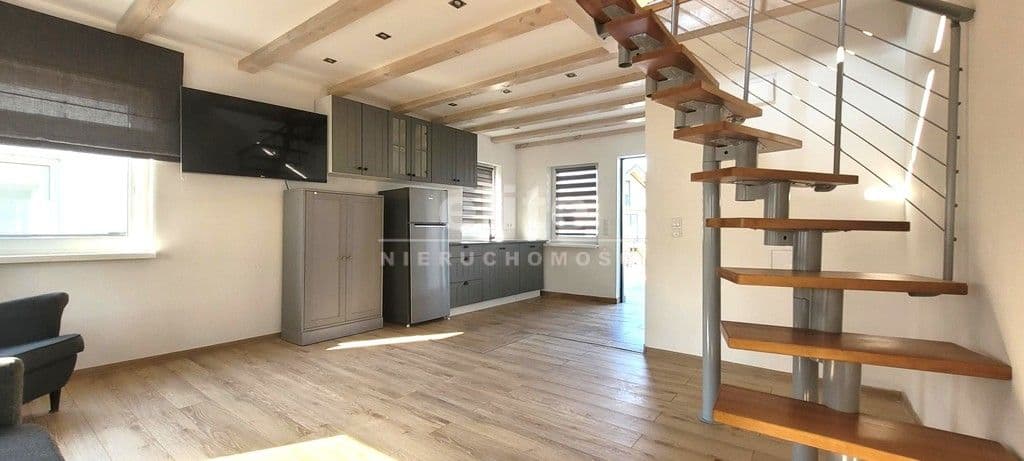Domek świeżo wykończony i wyposażony w nowe meble i sprzęty. Na podłodze w części dziennej oraz na poziomie I - panele. W cześci kuchennej oraz łazience terakota.
