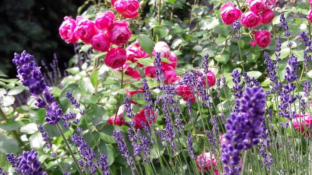 1.Ogród tarasowy zagospodarowany krzewami ozdobnymi i drzewami.