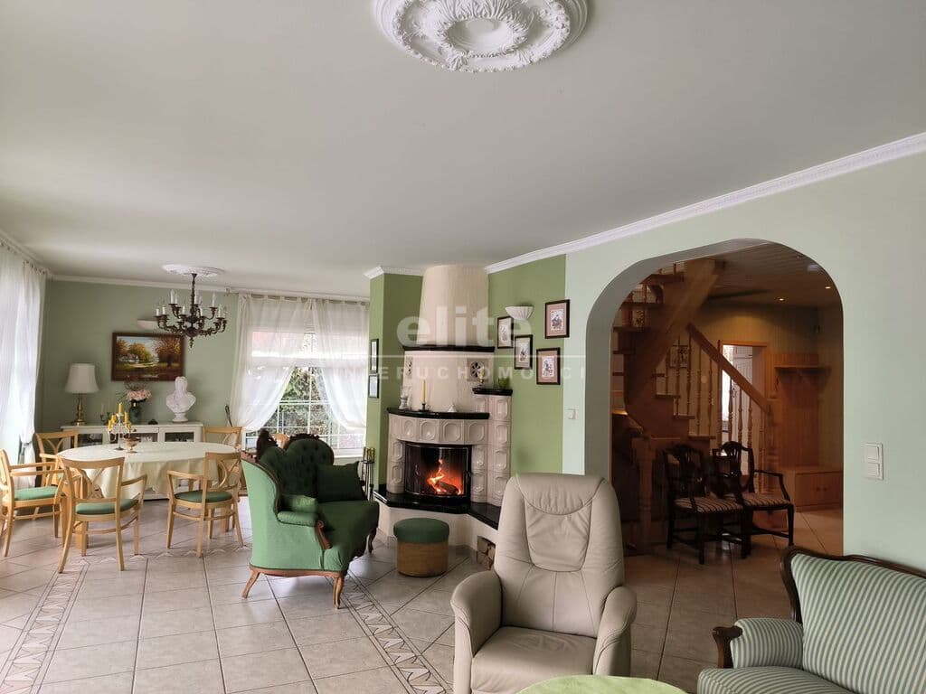 . Dom ogrzewany olejem opałowym oraz kominkiem.