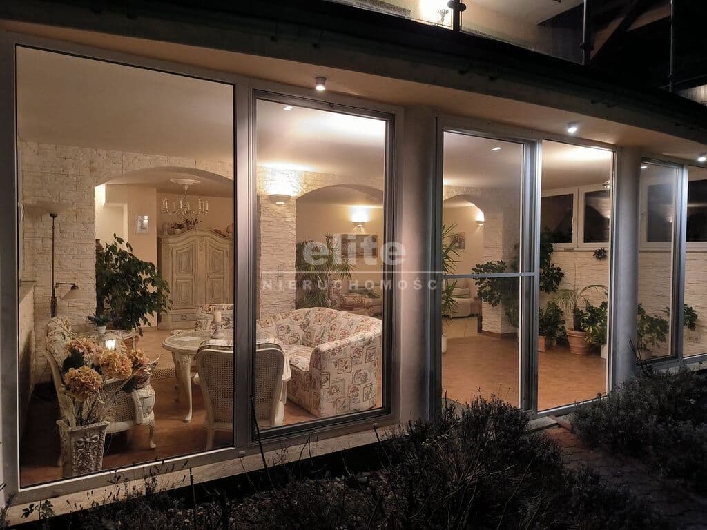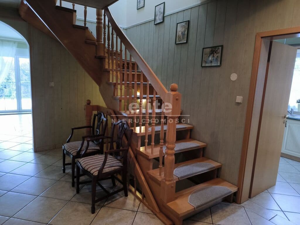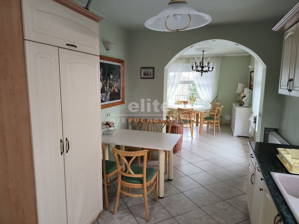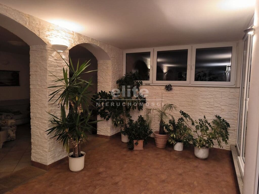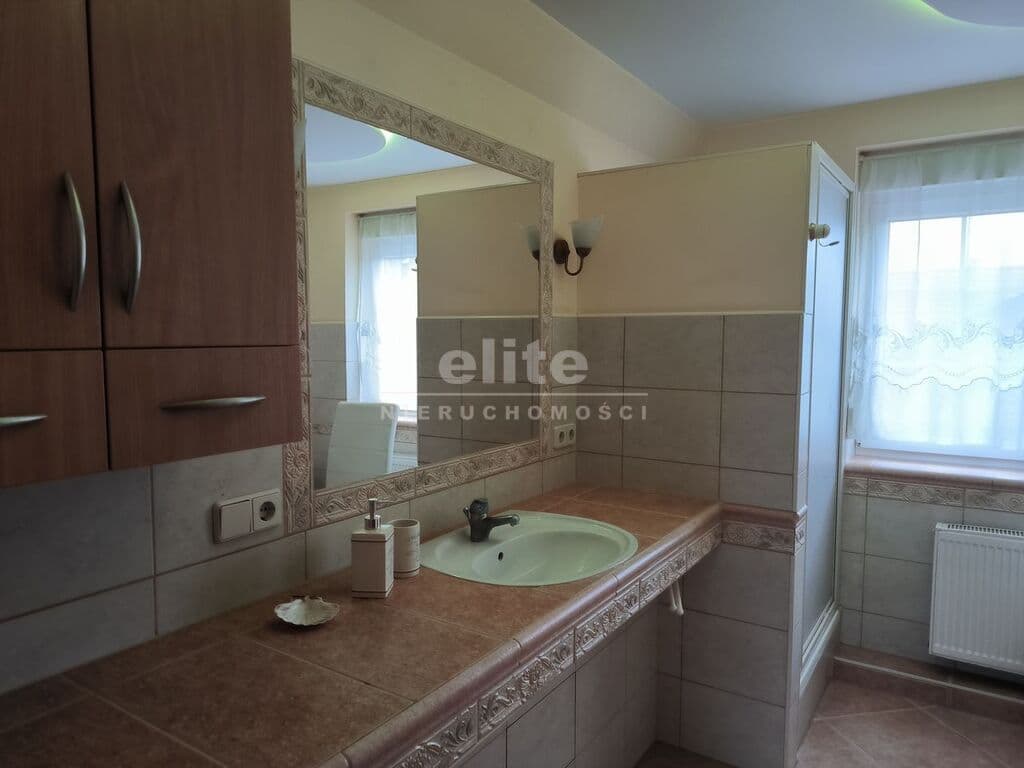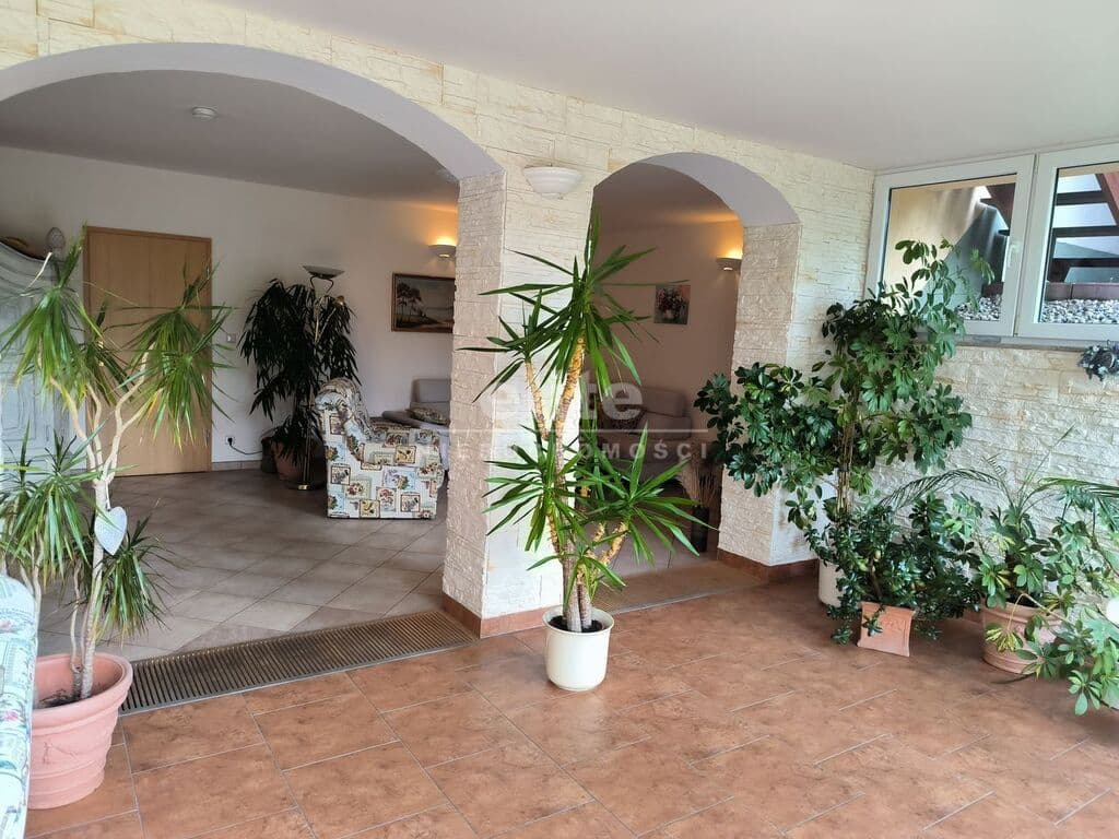 Obok znajduje się pokój gościnny oraz łazienka z prysznicem. Wszystkie okna na parterze są wyposażone w rolety zewnętrzne. Z salonu prowadzi wyjście na duży, przeszklony taras (4 m x 8 m), wyłożony deskami.