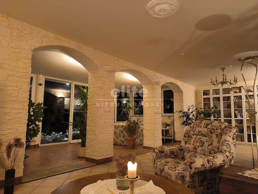 •Przestronny salon z kanapami i biblioteką, połączony z oranżerią. Oranżeria wyłożona kamieniami z piaskowca, z dużymi roślinami, zamknięta wysokimi, przesuwnymi oknami z moskitierami. We wszystkich pomieszczeniach podłogi wyłożone są terakotą.
