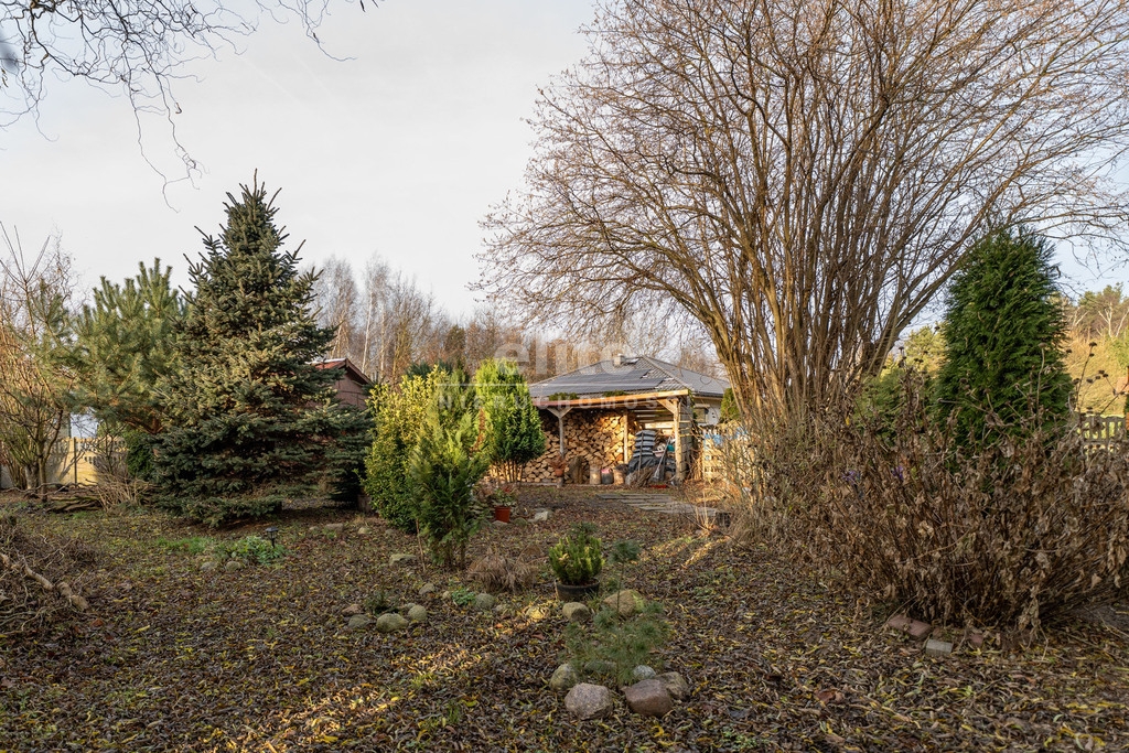 Dom posadowiony jest na działce o powierzchni 733 m², w pełni zagospodarowanej, z licznymi nasadzeniami krzewów oraz drzew owocowych, tworzącymi estetyczną i rekreacyjną przestrzeń.