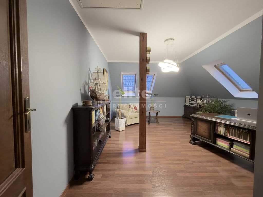 * sypialnia aktualnie wykorzystywana jako gabinet z wejściem na strych 17,25[m2]
