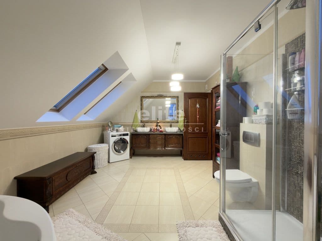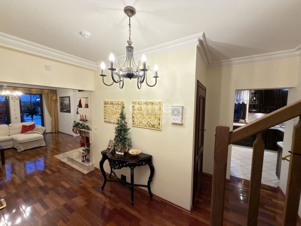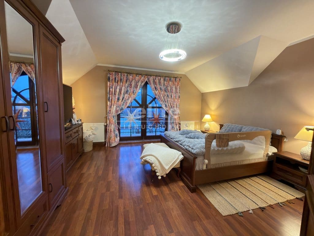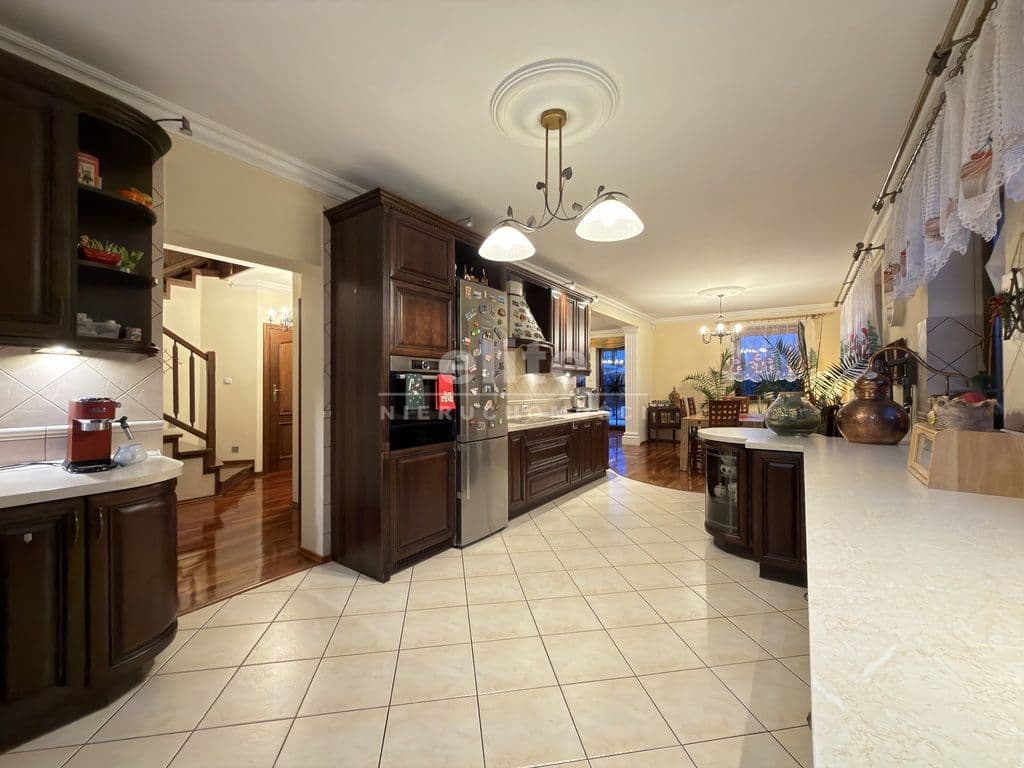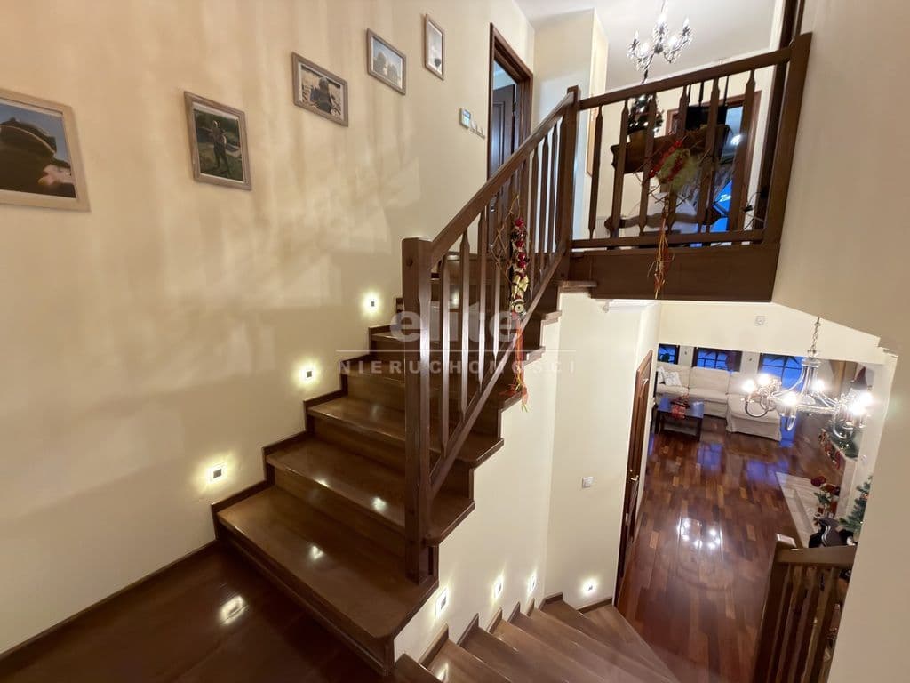 Nieruchomość wykończona jest porządnymi materiałami z dbałością o szczegóły, na podłogach parteru oraz w hallu na piętrze położone jest drewno egzotyczne, drewniana stolarka w całym domu, w kuchni i łazience ogrzewanie podłogowe.