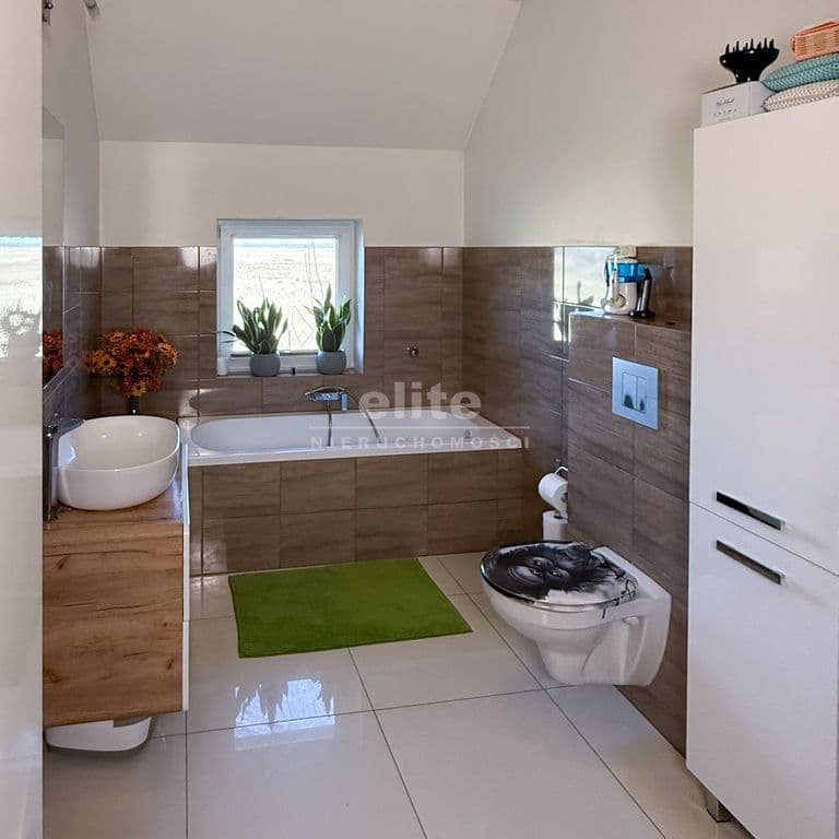 - Łazienkę oraz bezpośrednie przejście do garażu.