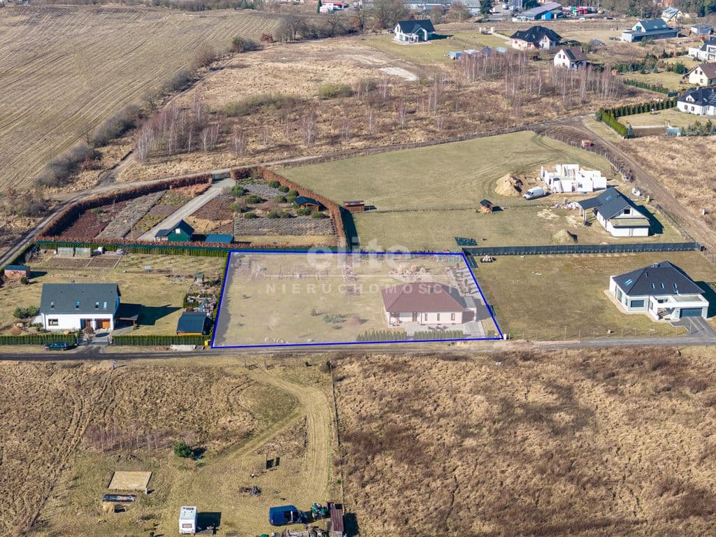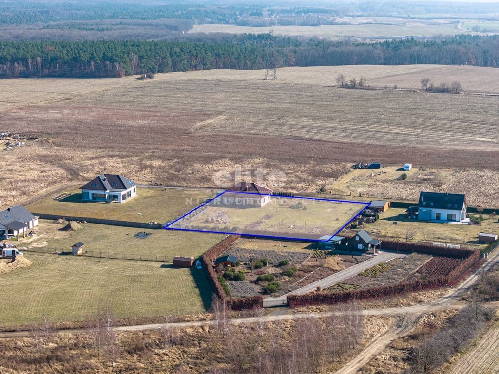 Wyposażenie domu obejmuje ogrzewanie gazowe podłogowe, okna PCV trzyszybowe, dachówkę ceramiczną. Woda z własnego ujęcia, kanalizacja – ekologiczna oczyszczalnia. Działka o powierzchni 3250 m² (w kształcie zbliżonym do kwadratu), ogrodzona, zagospodarowana z możliwością podziału na mniejsze części. Sad owocowy z wieloma drzewami i krzewami owocowymi, ponadto warzywnik ze skrzyniami. Na terenie znajduje się także duży kojec dla psów. Istnieje opcja pozostawienia sprzętu do pielęgnacji ogrodu przez właściciela.