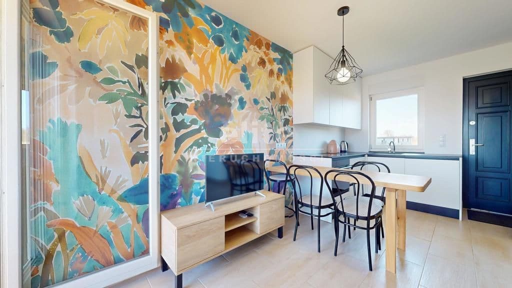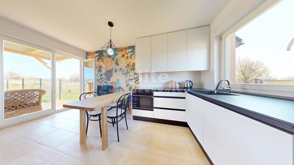 -przestronnego salonu z aneksem kuchennym z wyjściem na słoneczny taras